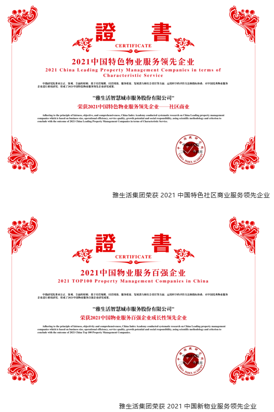 在此次百?gòu)?qiáng)研究測(cè)評(píng)中,雅生活首次以“智慧城市服務(wù)商”的身份榮獲“2021中國(guó)智慧城市服務(wù)領(lǐng)先企業(yè)”和“2021中國(guó)特色服務(wù)領(lǐng)先企業(yè)——社區(qū)商業(yè)”,這也說明雅生活在智慧城市服務(wù)、創(chuàng)新服務(wù)生態(tài)構(gòu)建等領(lǐng)域已獲得廣泛認(rèn)可。