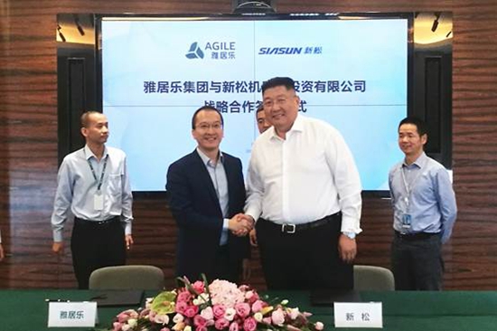 2017年7月26日,雅居樂集團與新松機器人投資有限公司在廣州雅居樂中心簽署戰略合作協議,雙方將在產業園區/產業新城、產業應用和產業金融等領域深入合作,發揮各自優勢,整合雙方資源,強強聯合,優勢互補,共建特色產業,實現雙方在機器人產業發展生態平臺的建設和服務等領域的長期戰略合作,共同推進中國機器人全產業及智能產業的綜合發展。雅居樂集團副總裁潘智勇、新松機器人投資有限公司總裁郝占崗等出席了簽約儀式,并分別代表雙方簽署了戰略合作協議。