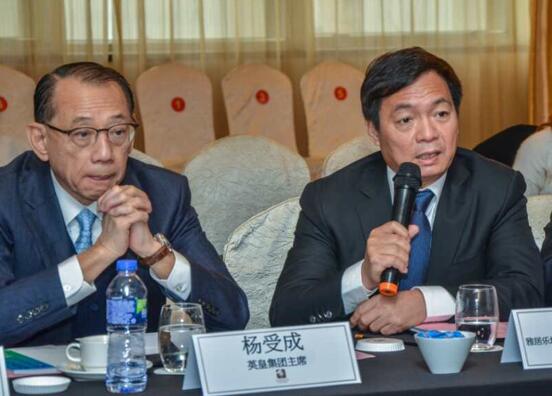 雅居樂集團主席兼總裁陳卓林(右)與英皇集團主席楊受成洽談影視科創小鎮的打造